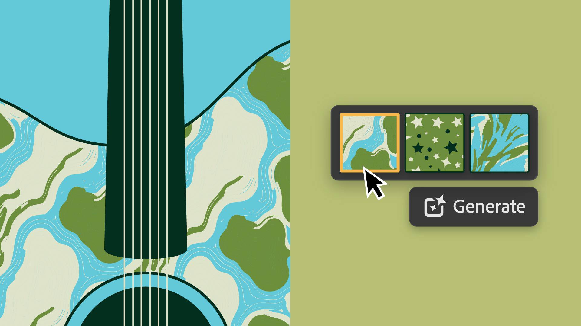 イラストにテクスチャと視覚的な魅力を加えます。生成パターンを使用して、プロンプトとスタイルを含むパターンオプションを調べます。