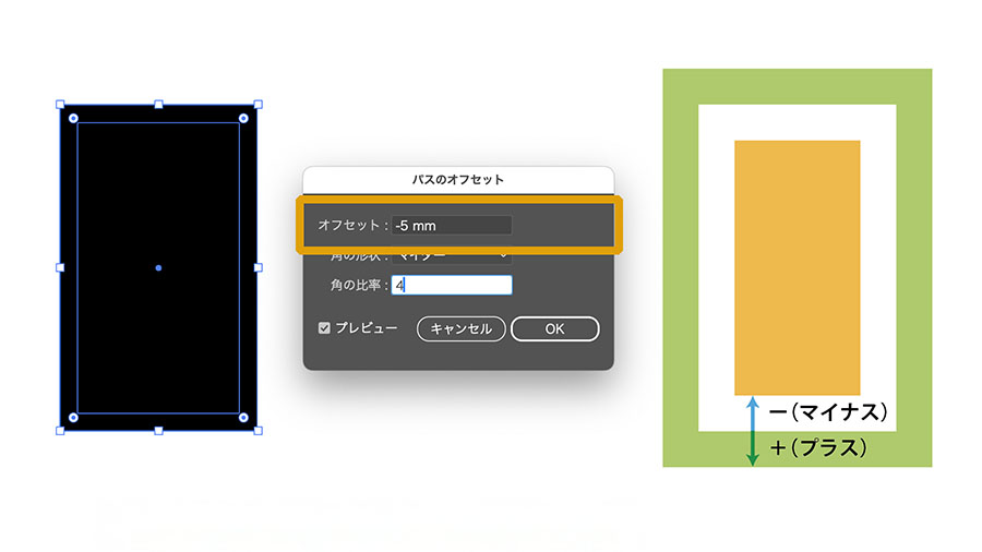 表示されたダイアログボックスで「 オフセット 」に「-5mm」を入力し、「 OK 」をクリックします。