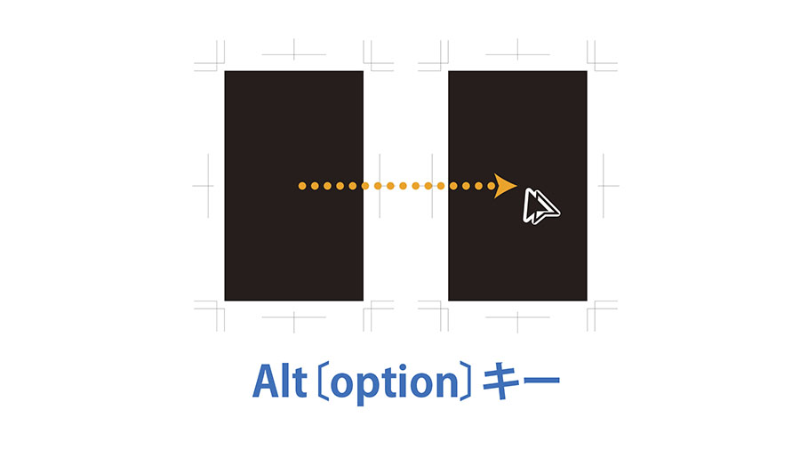 作成した二つの長方形を選び、Alt〔option〕キーを押しながらドラッグして複製します。
