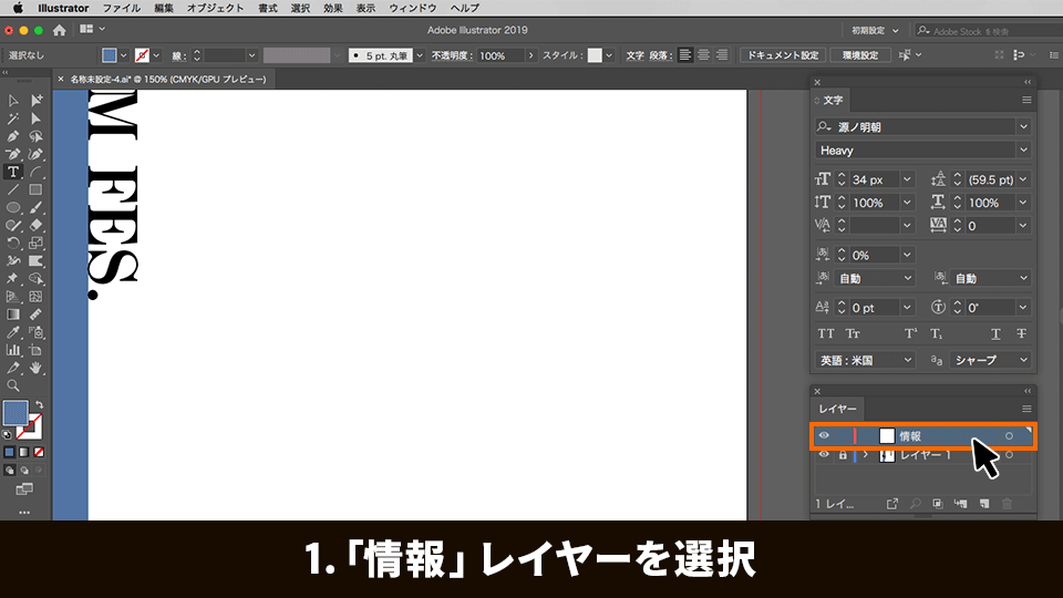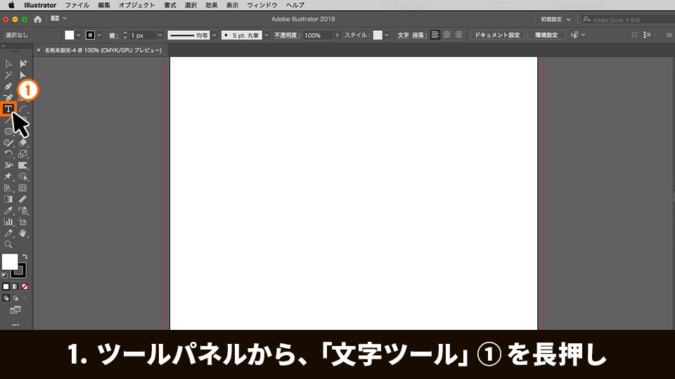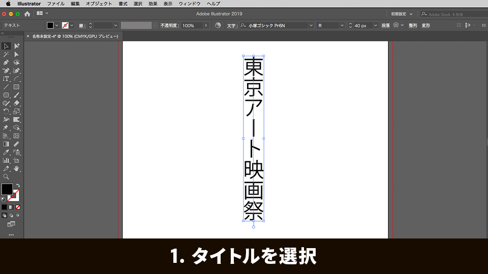 アートボードが開いたら、初めにタイトルなどのテキストを作成していきます。