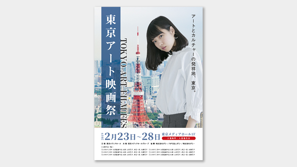 今度は横書き用の「文字ツール」を使って、「TOKYO ART FILM FES.」という英文のタイトルテキストを作成し、日本語タイトルと同じ文字設定を適用します。