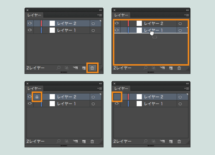 レイヤーとは透明なシートのようなもので、それぞれのレイヤーにバラバラに絵を配置しても合わせて見ることで1枚の絵に見えます。ただし、絵の位置が重なってしまうと下のレイヤーに置かれている絵は上のレイヤーの絵に隠れてしまうので、重ねる順番には気をつけましょう。