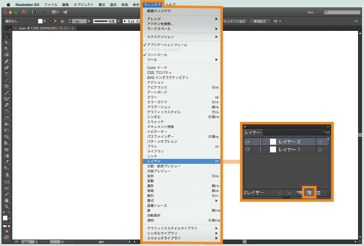 アプリケーションメニューの「 ウィンドウ / レイヤーにチェックを入れる