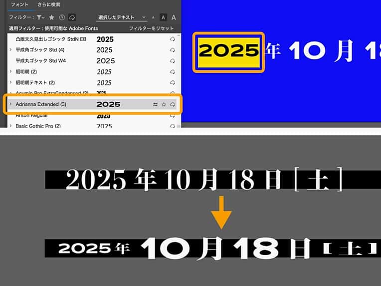 組版にメリハリを付けたいので、数字だけ別のフォントに変更します。