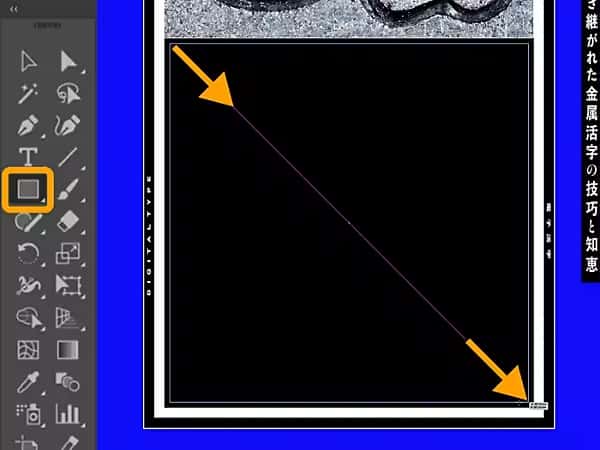 サンプルアセット「tutorial_04.ai」を開きます。画像の下の黒いスペースに、まず「長方形ツール」で四角を描きます。「Shift」キーを押しながらドラッグすることで、正方形となります。描いた正方形をコピーしておきます(Mac:command+CまたはWin:control+C)。