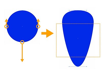 「楕円形ツール」でshiftキーを押しながら正円を描きます。「ダイレクト選択ツール」でアンカーポイントをドラッグし、形を調整します。