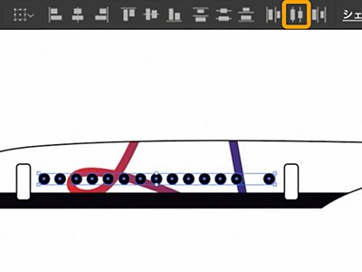 右端の窓を選択し、ドアの近くまで右に移動します。窓すべてを選択し、コントロールバーの「⽔平⽅向中央に分布」をクリックすると、窓の間隔を均等にすることができます。