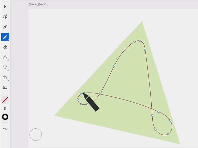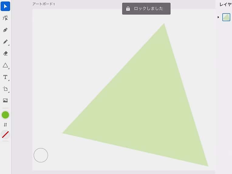 まず、描画のガイドとなる正三⾓形を配置します。ツールバーの「塗り」をタップし、スウォッチから好みの⾊を選択します。「線」は「なし」を指定します。