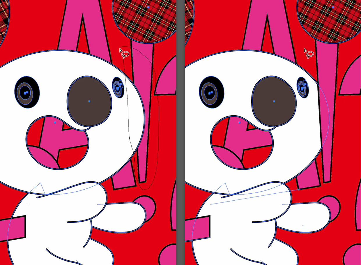 クロスと重なりを適用したいオブジェクトの選択範囲を囲むようにパスを描くだけで、適用されます。クロスと重なりの適用後にオブジェクトを変更する場合は、オブジェクト>「クロスと重なり」>「編集」の選択で再び変更することができます。