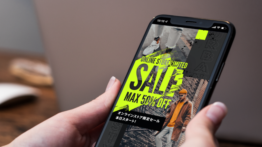 「ONLINE STORE LIMITED」のみが選択された状態で、[opt/alt]キーを押しながら「SALE」の下にドラッグして複製します。複製されたテキストにも中マド効果が引き継がれます。