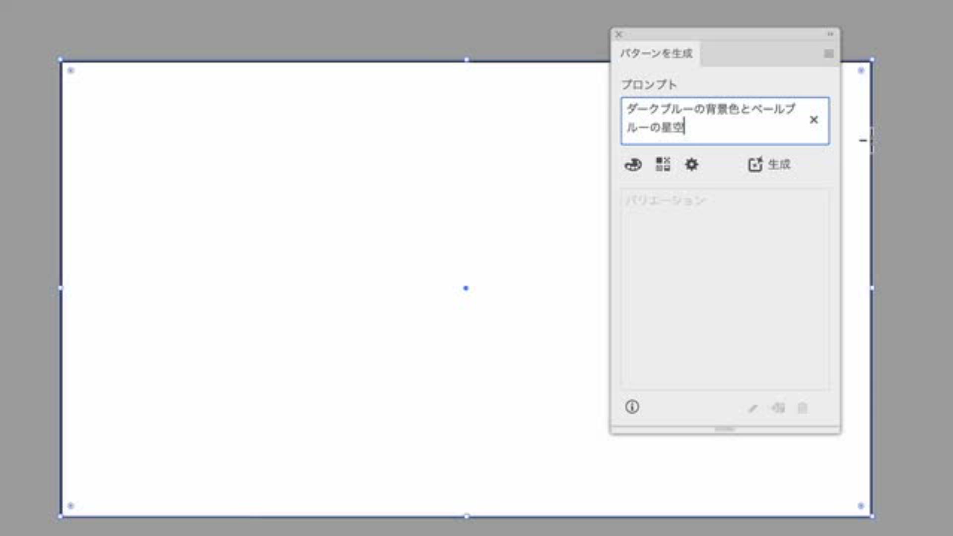 この作例では「ダークブルーの背景色とペールブルーの星空」というプロンプトを入力しました。