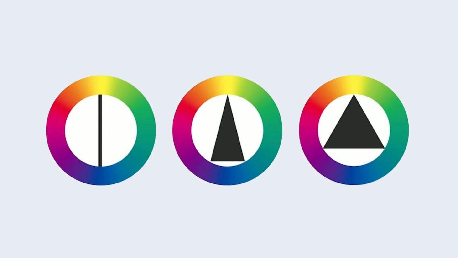 色を体系化する時に用いる「色相環」を使った配色方法を学びます。色相環の中に三角形や多角形を組み合わせることで、目的に応じたさまざまな配色パターンを考えることができます。