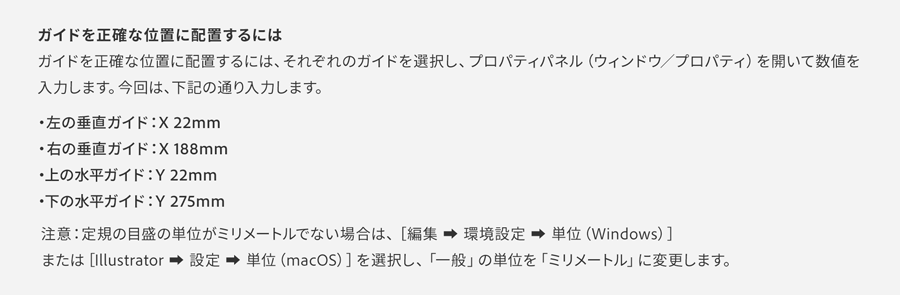 ドキュメントの周囲にホワイトスペース(マージン)を取るために、ガイドを設定します。ガイドは、オブジェクトなどをドキュメント上に配置する際の目印となる線のことです。