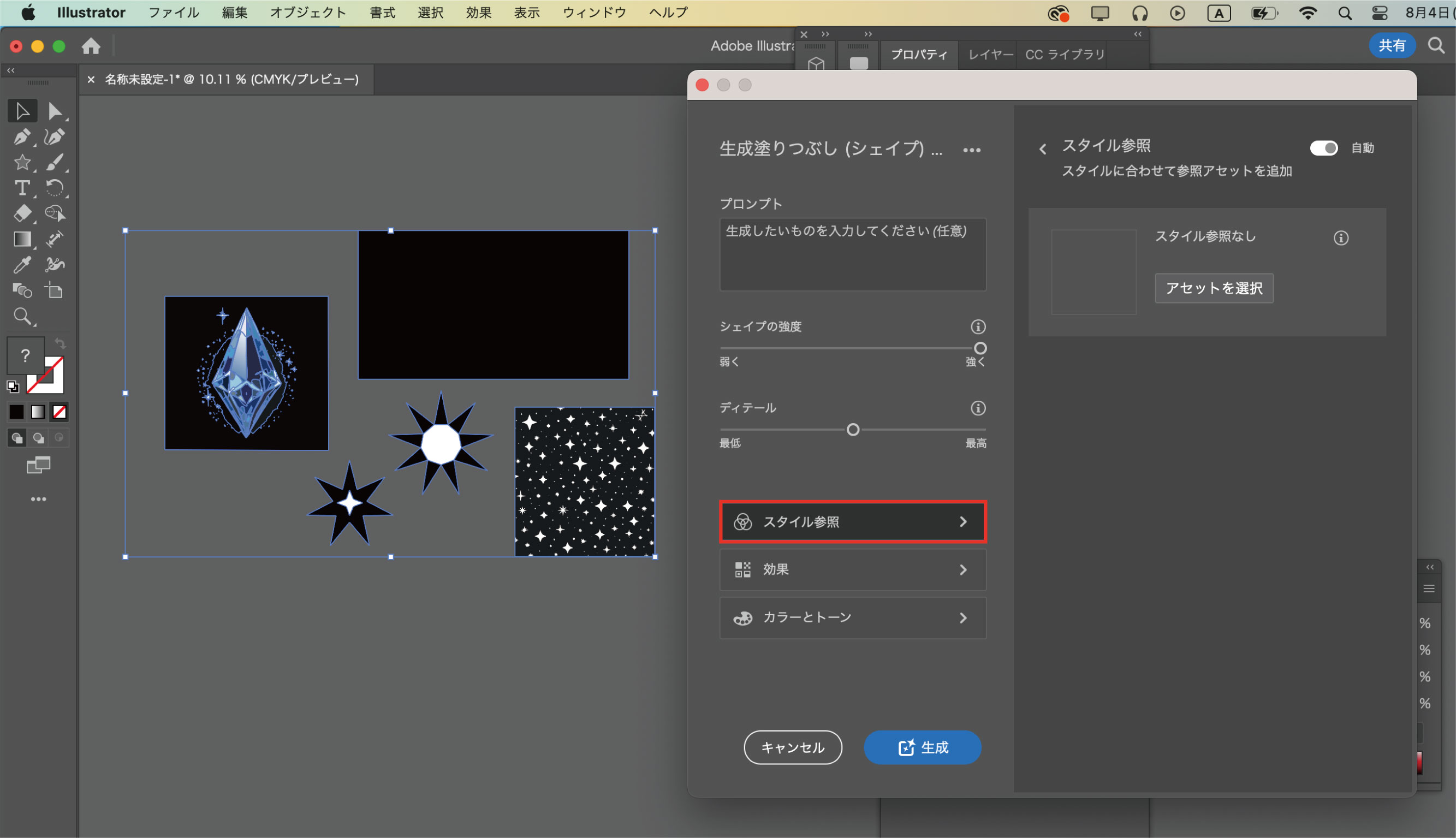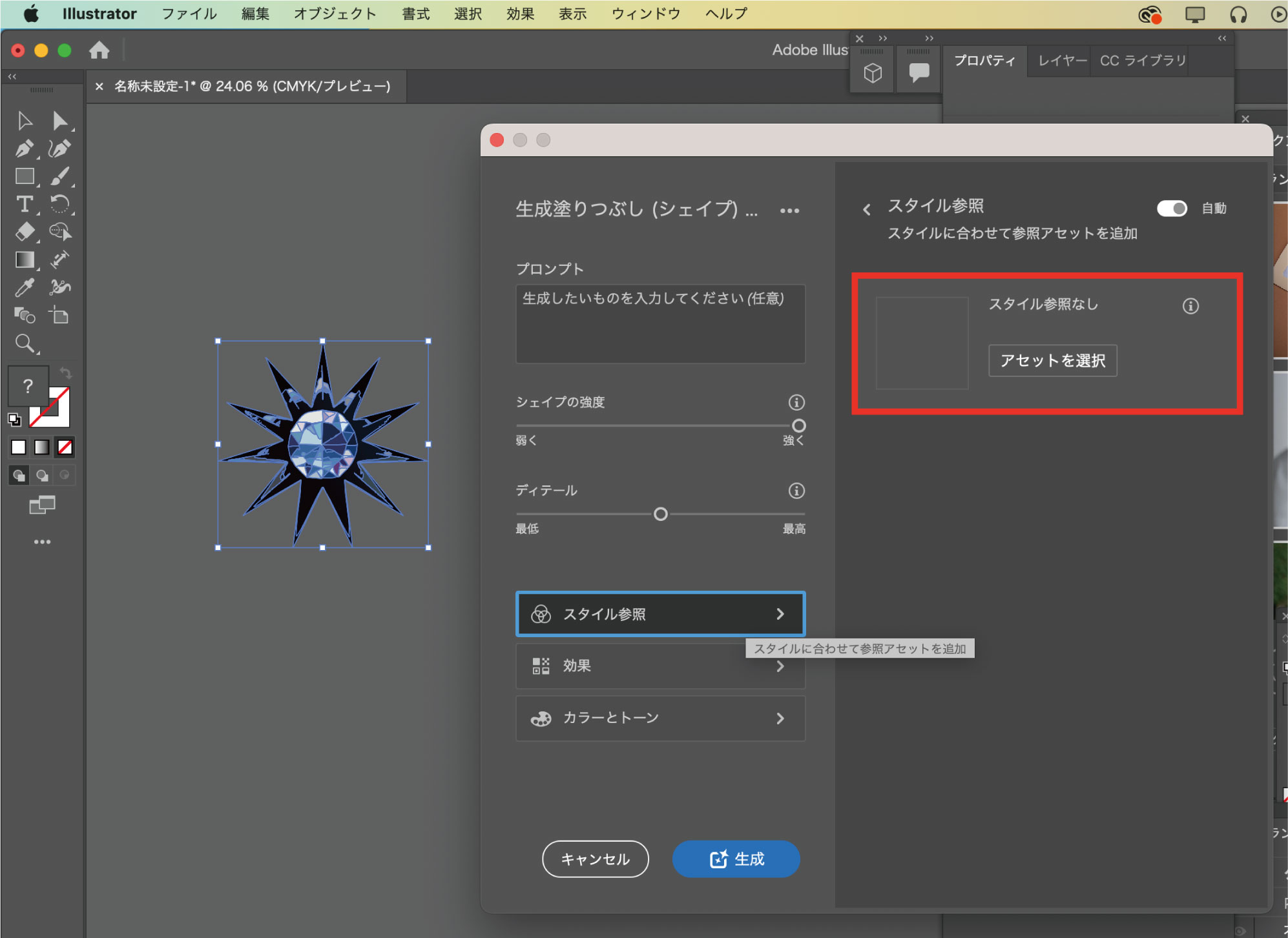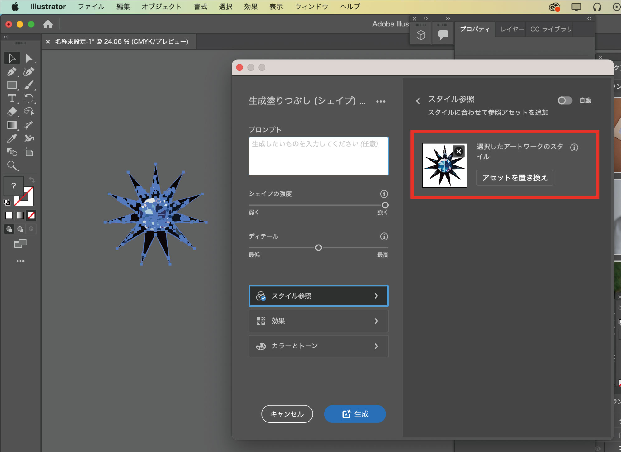 完成したオブジェクトをもとに、同じスタイルで異なるシェイプのオブジェクトを量産したい場合は、スタイル参照でオブジェクトを選択して生成します。