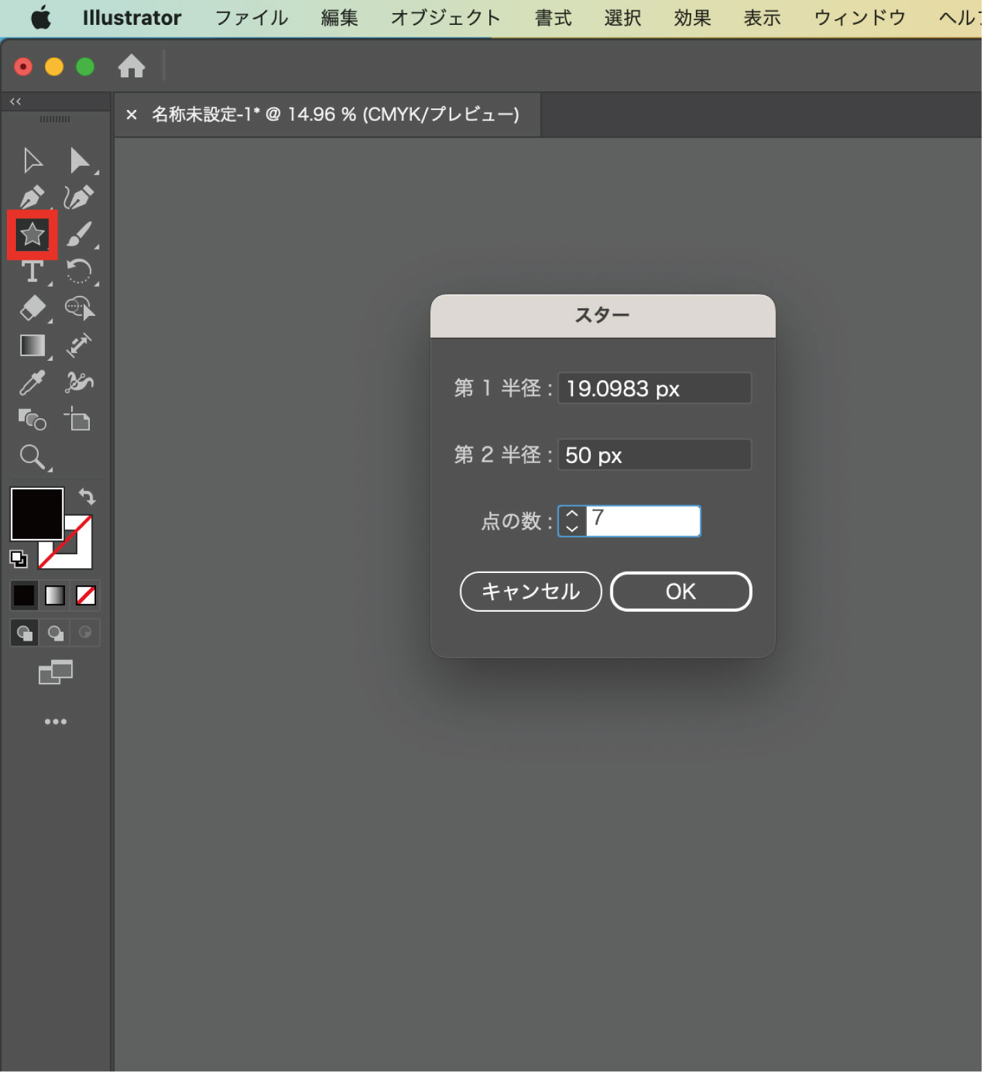 スターツールでアートボードをクリックして、七角形を作成します。