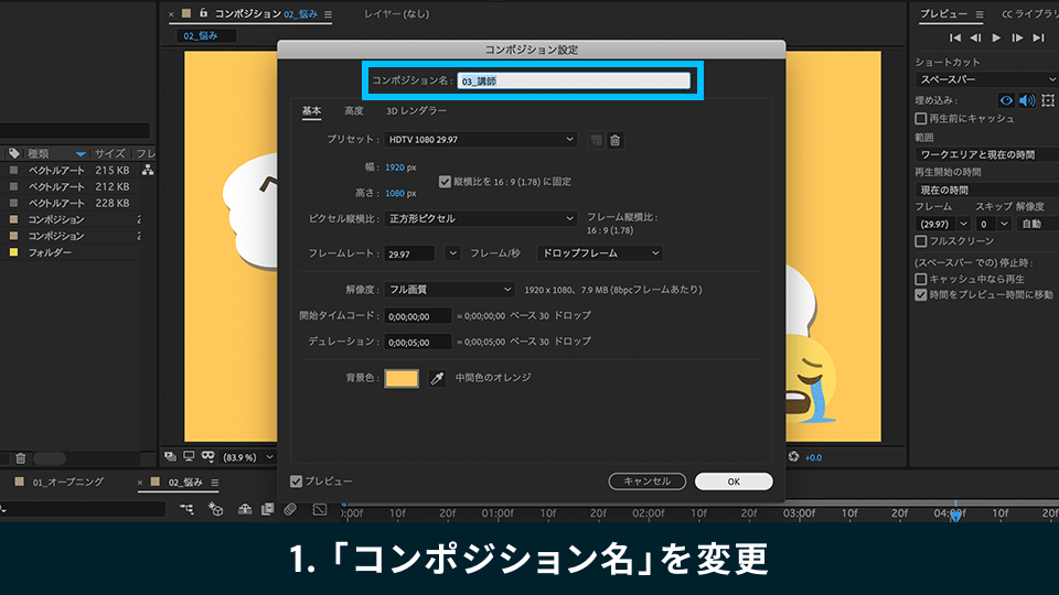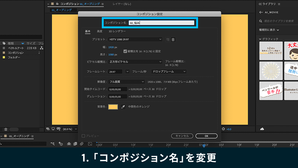 Step5 :コンポジションを編集する(1)~オープニング