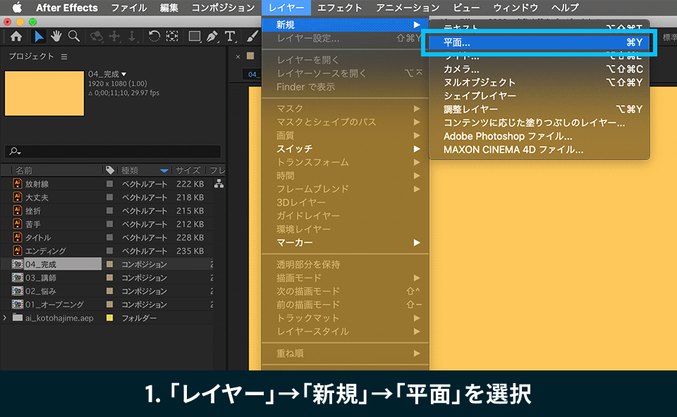 それでは、After Effectsでの作業に入りましょう。