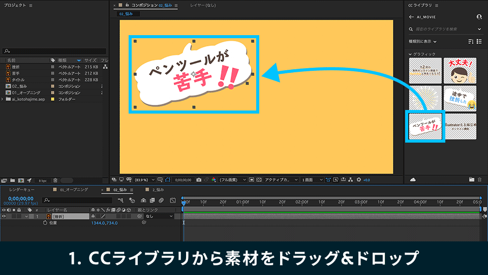 Step4 :コンポジションに素材を配置する