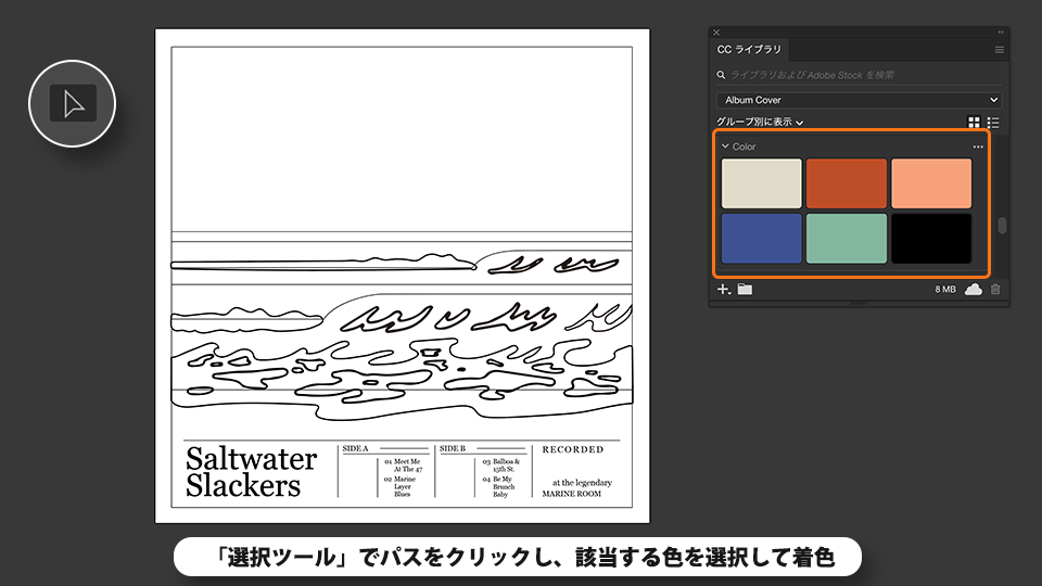 Creative Cloud Libraryにインポートした色で、アートワークに色を追加します。