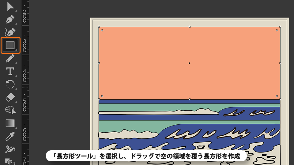 ツールバーで「長方形ツール」を選択し、空の領域を覆う長方形を作成します。