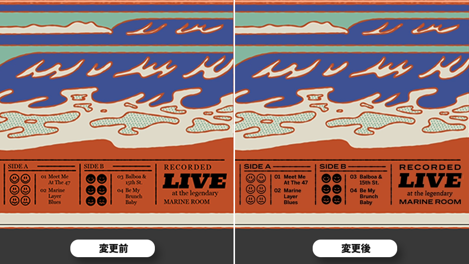 アートワークのそれぞれの領域に、オレンジ色の輪郭線が追加されました。