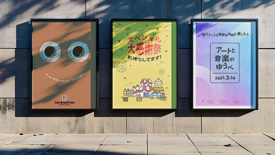 Illustratorでデザインにテキストを追加する方法と、テキストを変形させたり、効果を加えたりして、見栄えのする文字デザインを作成する方法を説明します。