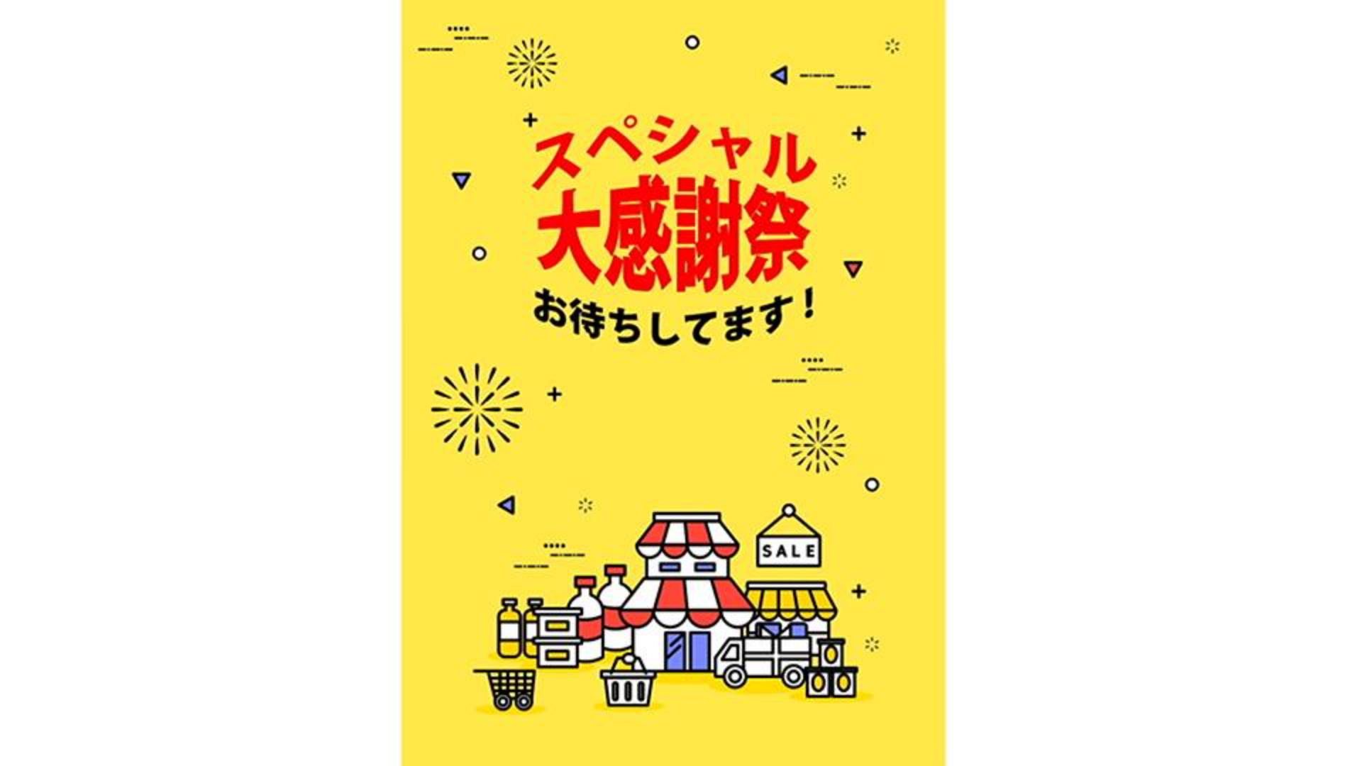 「大感謝祭」の文字を選択します。3と同様の操作で「ワープオプション」ダイアログボックスを表示させ、スタイルを「でこぼこ」、方向を「水平方向」、カーブを「25%」に設定し、「OK」をクリックします。