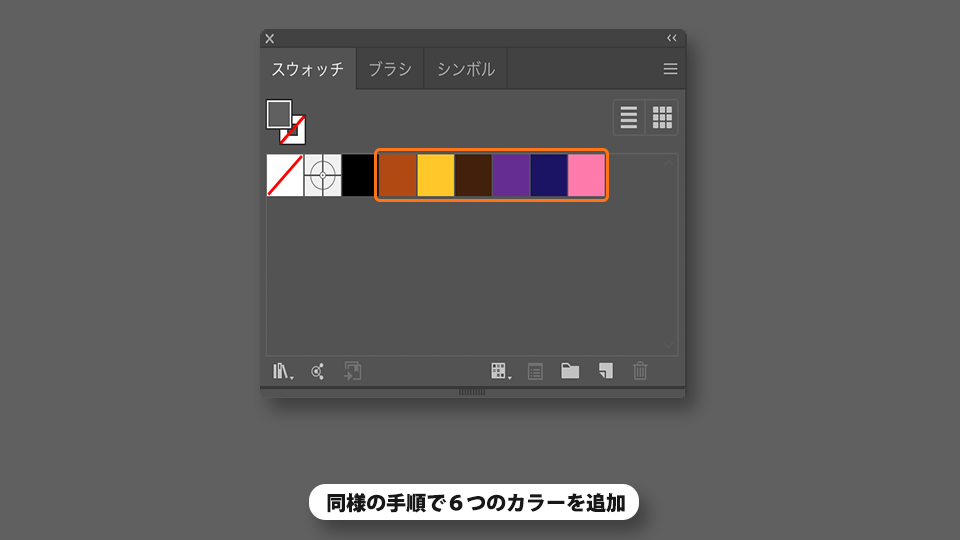 スウォッチパネルに、今回の作例で使用する7つのカラーを登録します。