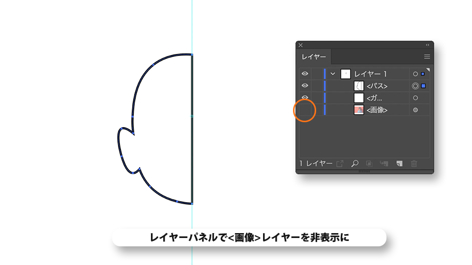 レイヤーパネルで<画像>レイヤーの目のアイコンをクリックして、モデルの写真を非表示にします。