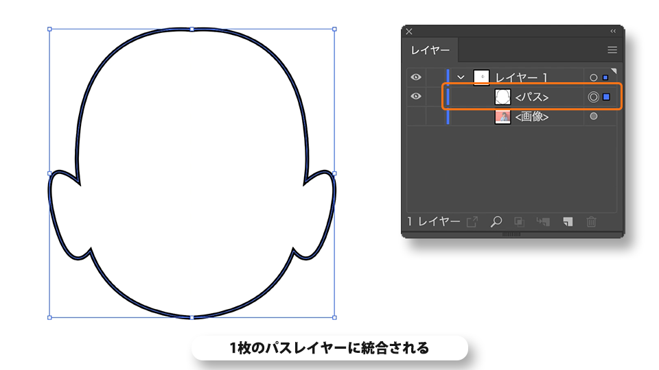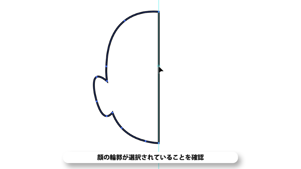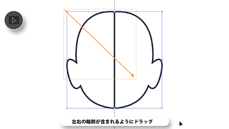 左右の輪郭が含まれるようにドラッグして、顔全体のパスを選択します。