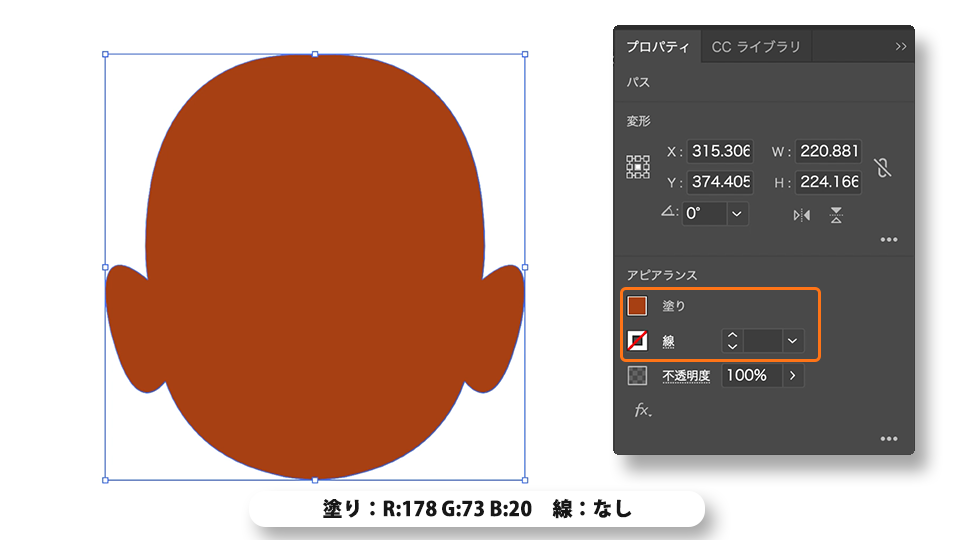 塗り:R:178 G:73 B:20(塗りのカラーピッカーをクリックし、スウォッチから選択します)