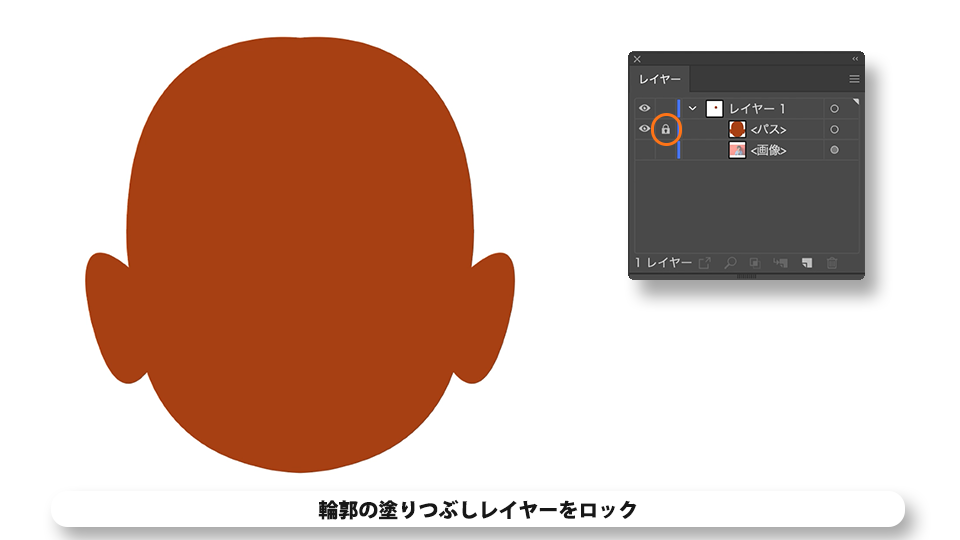 レイヤーパネルを開きます。塗りつぶした顔の輪郭レイヤーの「ロックを切り替え」をクリックしてロックします。