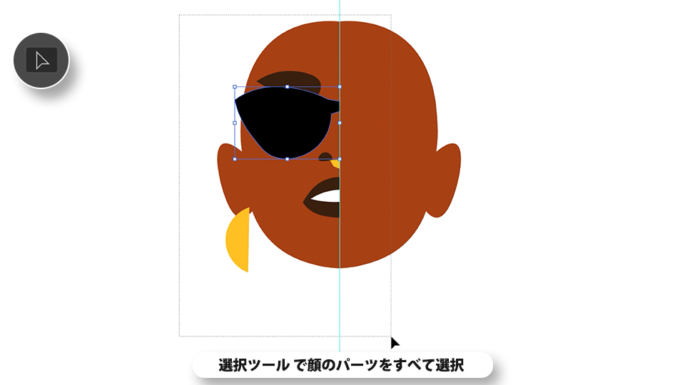 「選択ツール」で顔のパーツすべてが含まれるように選択します。