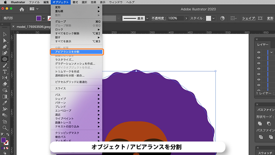 「オブジェクト」-「アピアランスを分割」を選択します。