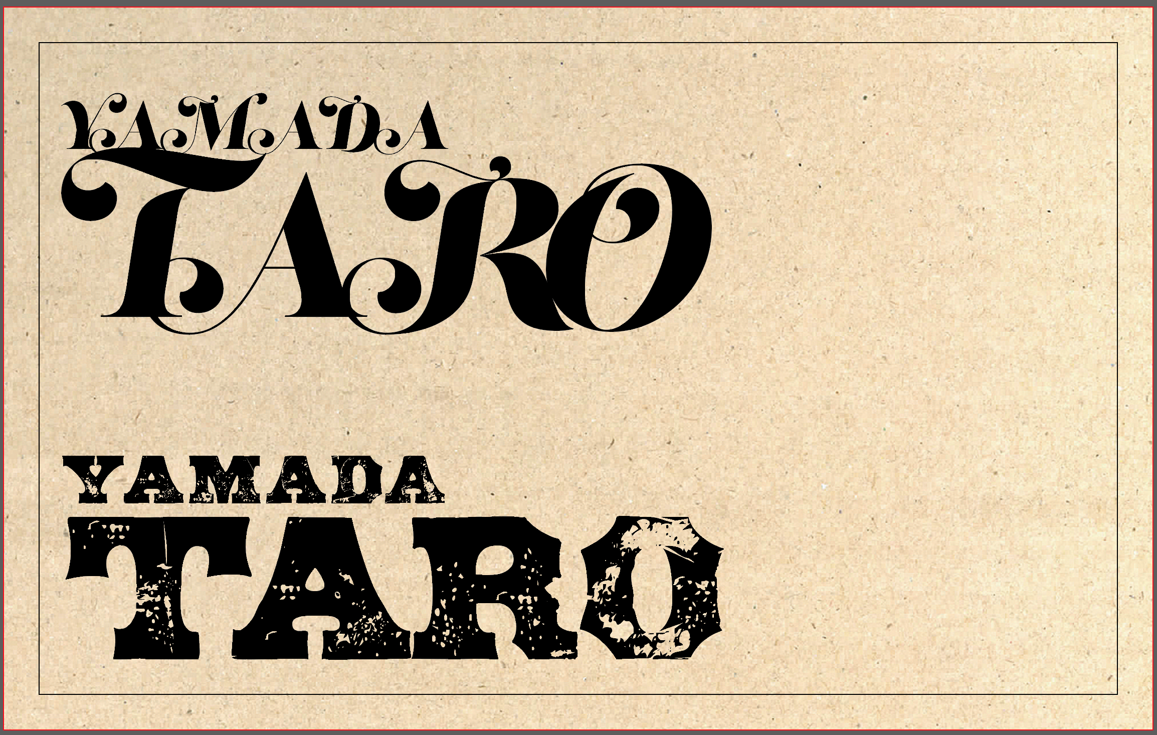バリエーションとして、縦組みの名刺も作成してみました。縦組みの場合はアルファベットを使わず、明朝系の書体と組み合わせることでレトロ感のある名刺となります。両面印刷をする場合には、アートボードを複数作成し、裏面のデータも用意する必要があります。