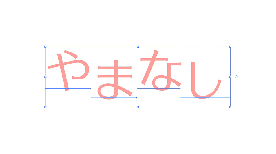 今度は、バウンディングボックスのコーナーハンドルを内側方向にドラッグし、サイズを縮小します。縮小された分だけ、両隣の文字の空きが自動で詰まります。次に、「と」の文字を下方向にドラッグして移動し、他の文字とベースラインを揃えます。