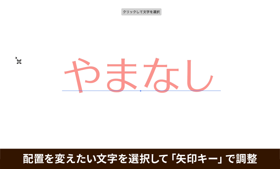 配置を変えたい文字、ここでは「や」と「な」をそれぞれ選択して上に移動させます。キーボードの「↑」「↓」を使うと、左右にずれることなくキレイに配置できます。