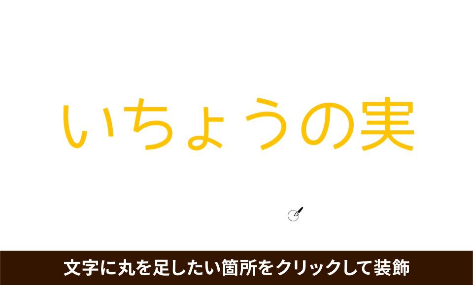 文字の先端に丸を足して装飾していきます。塗りブラシツールで丸を足したい部分をクリックします。丸のサイズを変更したい時は、再度、塗りブラシツールのアイコンをダブルクリックしてオプションを表示するか、キーボードの「 [ 」「 ]」キーを押してブラシのサイズを変更することができます。好みの雰囲気になるまで調整してみましょう。