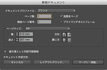 新規でドキュメントを作成する場合には、[レイアウトグリッド]と[マージン・段組]のいずれかを選択して作業を進めます