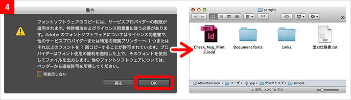 指定した場所に、InDesignドキュメントやリンク画像、欧文フォント、出力仕様書がパッケージされます。