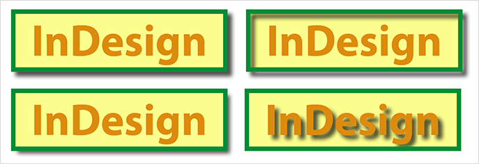左上から順に、[オブジェクト][線][塗り][テキスト]のそれぞれに対してドロップシャドウを適用したオブジェクト