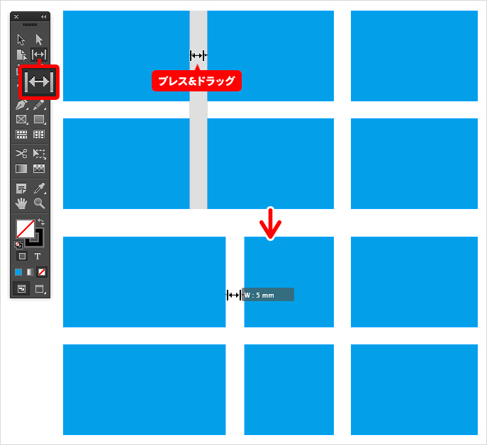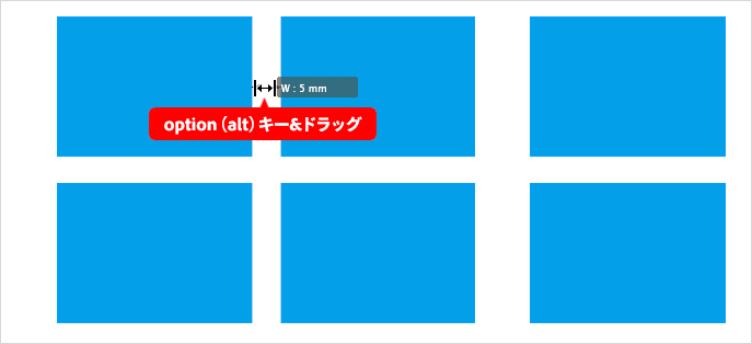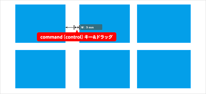 間隔自体のサイズを調整したい場合は、command(Windowsはcontrol)キーを押しながらドラッグします。左(下)方向にドラッグすると間隔は狭まり、右(上)方向にドラッグすると間隔は広がります