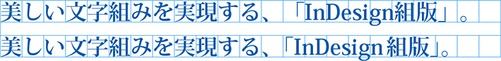 文字をベタ打ちしただけでは、バランスよい文字組みにはなりません。約物が連続するケースでは字間が空きすぎて見えますし、和文と欧文が並ぶケースでは、逆に字間がくっついて見えます。また、均等配置(箱組み)では、行長の半端なアキをどこかで吸収する必要がでてきます。InDesignでは、文字と文字の間隔(アキ量)を指定することで、目的に応じた美しい文字組みが実現できます