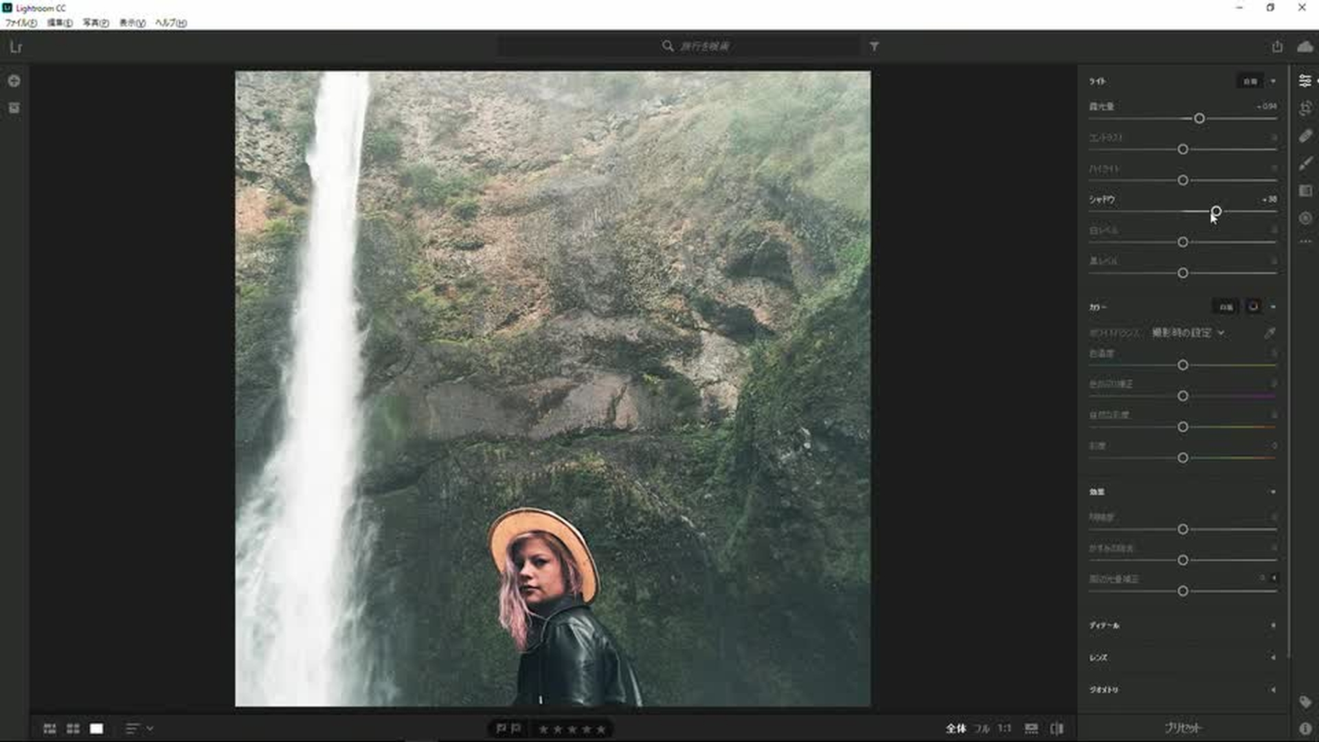「シャドウ」 写真の暗い部分の明るさを調整します。