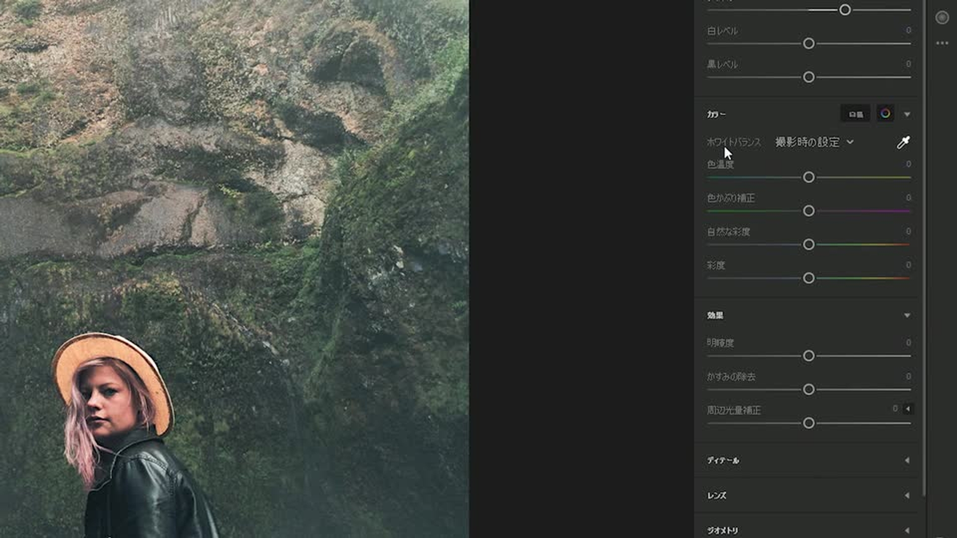続いて、写真の色味を調整します。ホワイトバランスを適用し、色温度、色かぶり、彩度などのスライダーを操作して、思い通りのカラーに仕上げていきます。