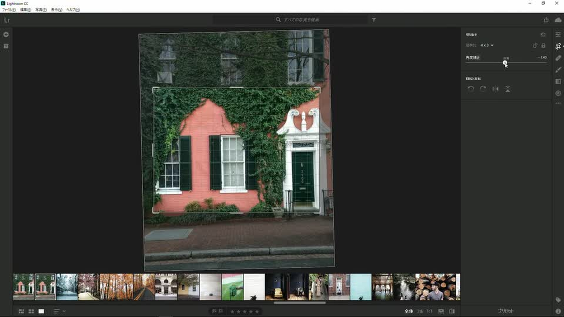 SNS投稿用やプリント用など、用途に応じた縦横比に写真を切り抜く方法を解説します。また、傾いた写真の角度や、レンズ特有のゆがみを補正する機能もご紹介します。