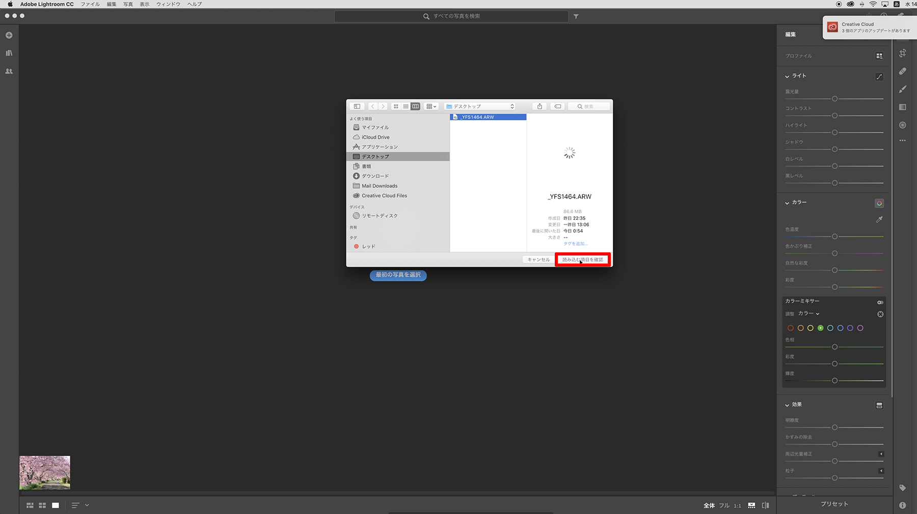 読み込みたい写真を選択し、[読み込む項目を確認]をクリックします。