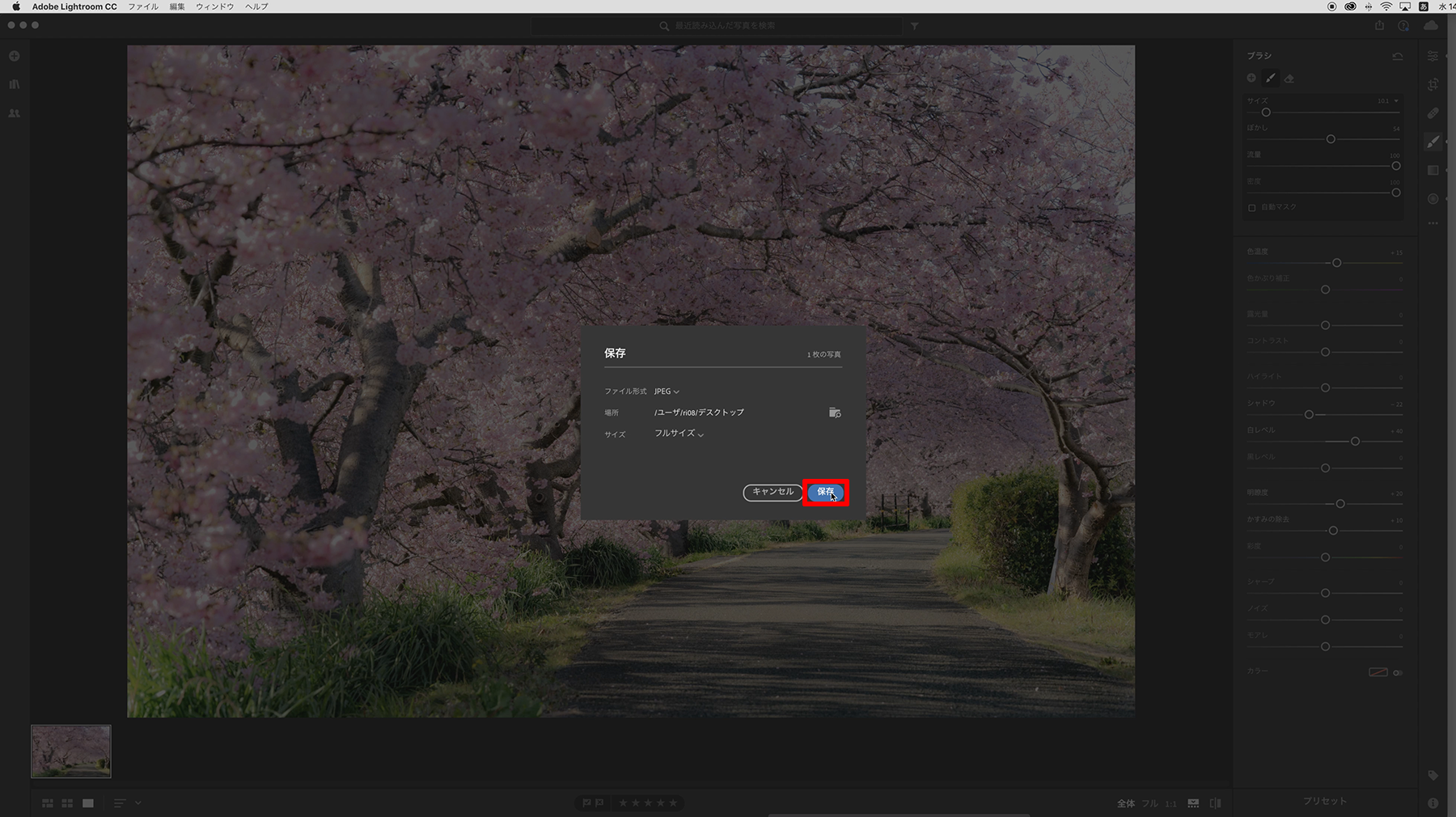 保存ダイアログボックスから、ファイル形式、場所、サイズを指定し、[保存]をクリックします。