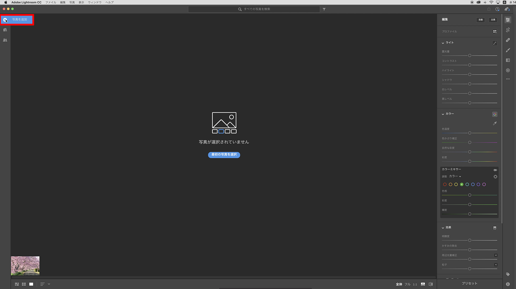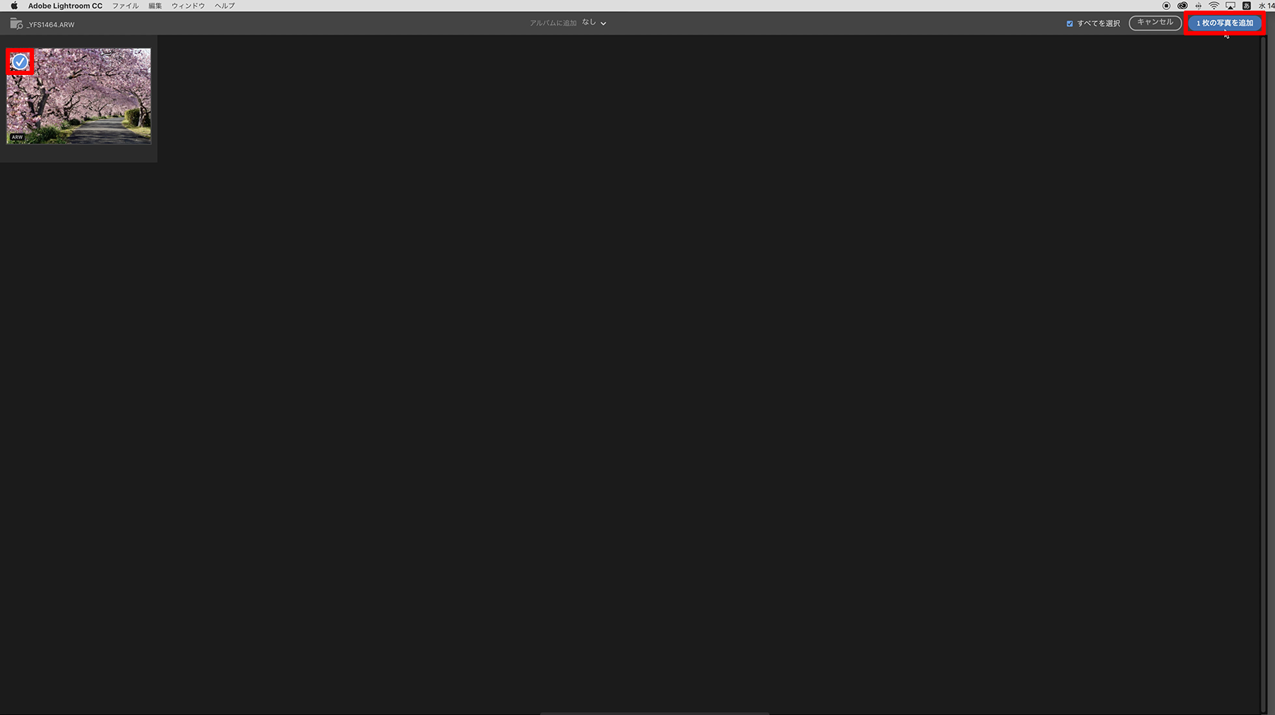 チェックマークがついていない場合は、サムネイルの左上をクリックすることで写真が選択され、青いチェックマークがつきます。