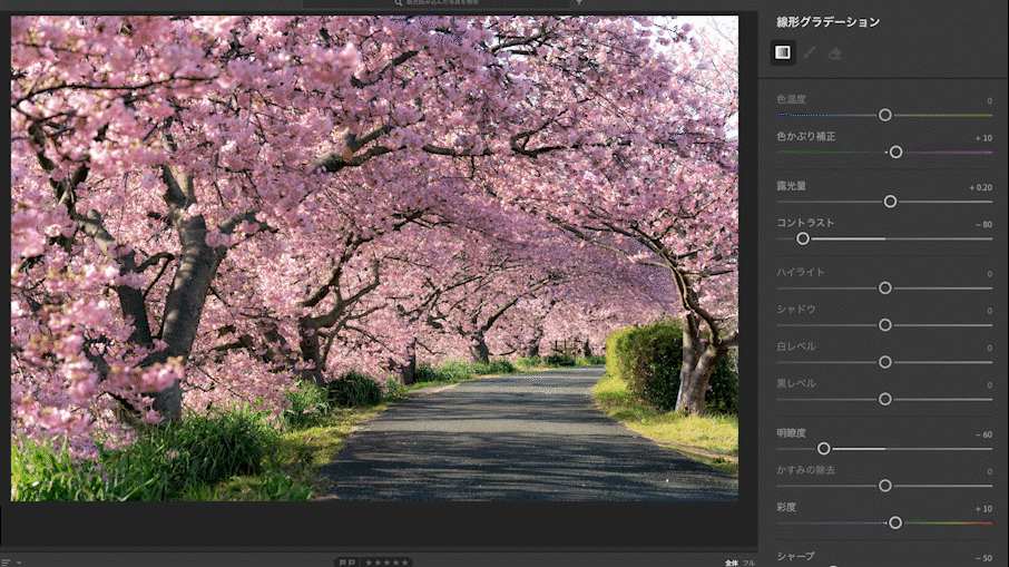 グラデーションを写真に適用してからでも効果の強さは何度も調整ができます。